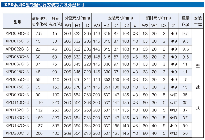 XPD系列C型數字式交流電動機軟起動器是采用電力電子技術、微處理器技術及現代控制理論設計生產的具有水平的新型起動設備。該產品能有效地限制異步電動機起動時的起動電流,可廣泛應用于風機、水泵、研磨、攪拌、輸送及壓縮機等負栽,是傳統的星三角轉換、自耦降壓、磁控降壓等降壓起動設備設備的理想換代產品。